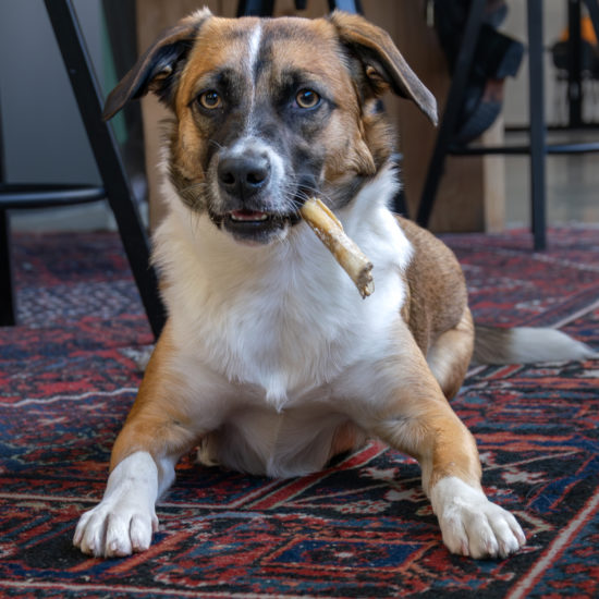 De dagelijkse wandelingen met mijn collega’s maken me erg gelukkig. Helemaal fijn is het als we de wandeling afsluiten met een lekker hondensnoepje.
